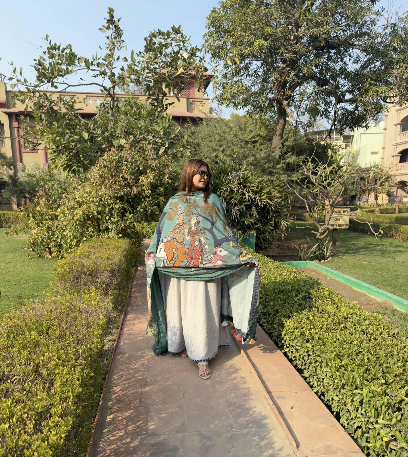 I absolutely loved wearing the Radha Krishna kurta with dupatta set during my visit to Vrindavan! The vibrant colors and beautiful design perfectly matched the divine vibe of the place. The fabric is comfortable and flowy, making it ideal for exploring the sacred surroundings. I received so many compliments on this stunning suit! It truly brought out the essence of Radha and Krishna, enhancing my spiritual experience. Highly recommend for anyone visiting Vrindavan! 🌸✨