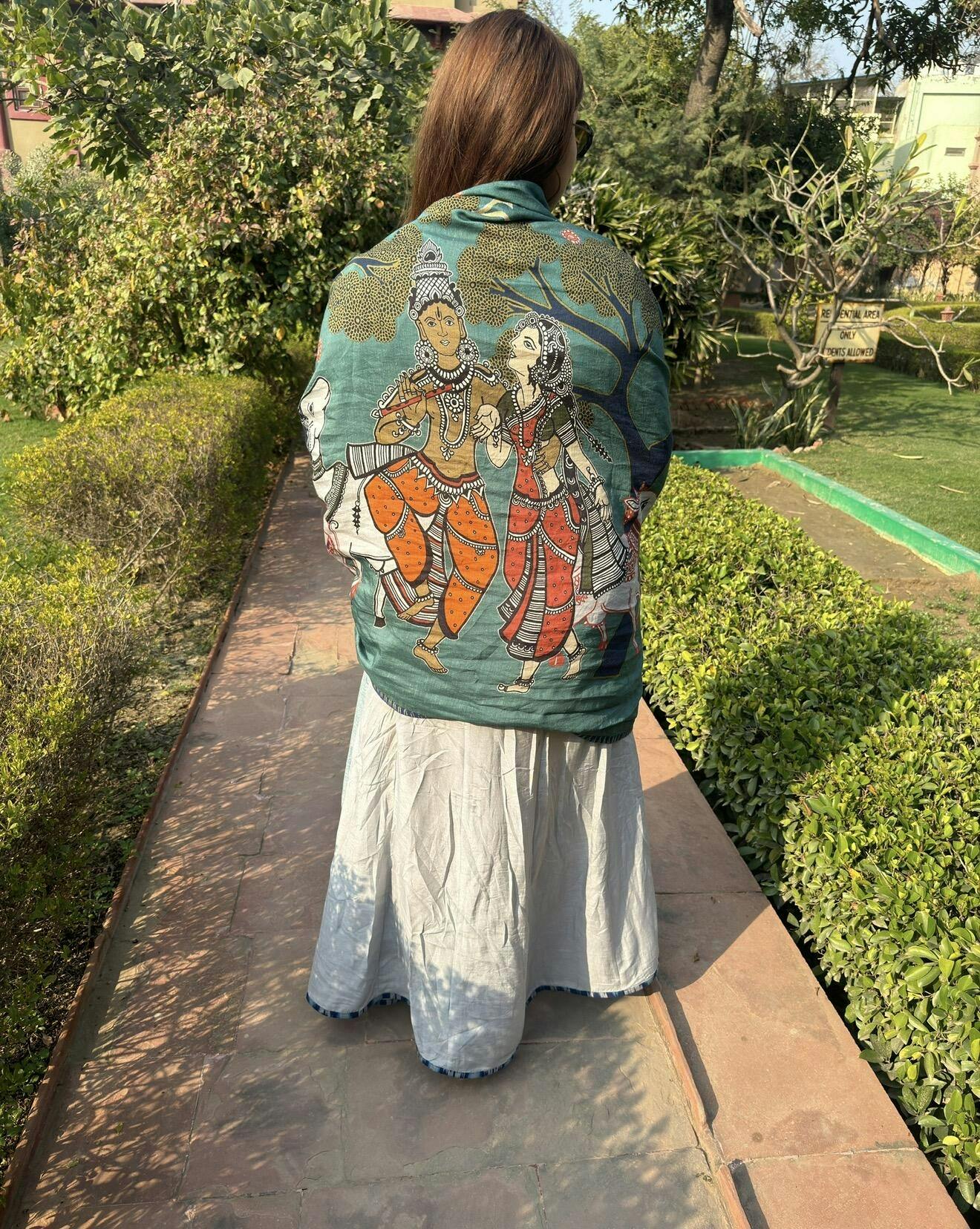 The first thing that struck me about the Kolam Dupatta—the seated, serene figure of Ardhanareeshwara. Bold yet fluid. Feminine grace and masculine power in perfect sync. Shiva and Shakti—duality dissolving into oneness.